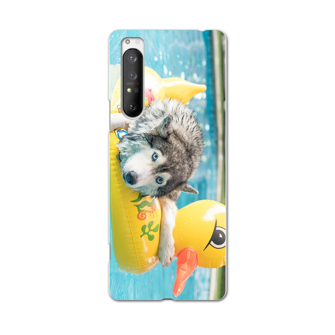 Xperia 1 II SO-51A エクスペリアワンマークツー so51a ドコモ docomo スマホ カバー ケース スマホケース スマホカバー PC ハードケース 014842 犬 シベリアンハスキー ひよこ プール